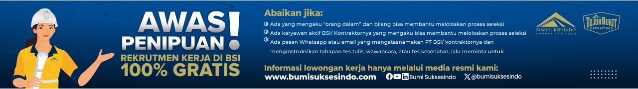 PT Bumi Suksesindo kembali membuka lowongan pekerjaan sebagai Green Operator. Silahkan baca ketentuan dan scan barcode terlampir untuk mengirimkan CV